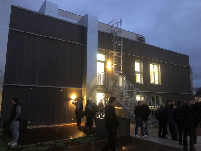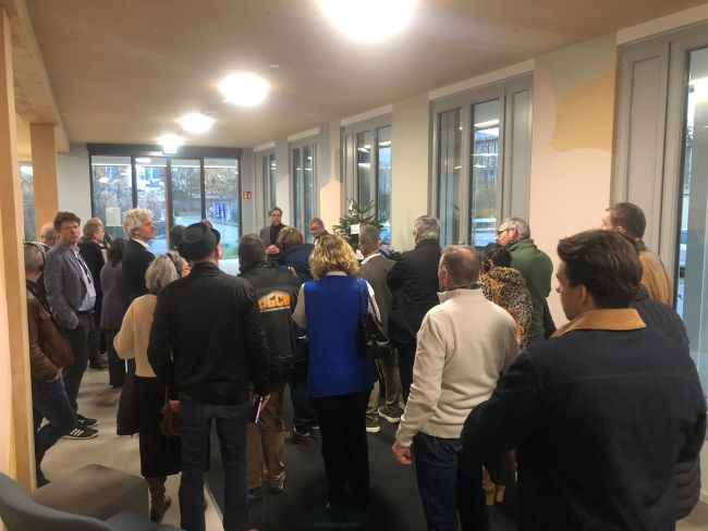 Das gemeinsame Programm startete mit einer geführten Besichtigung des Black Forest Innovation Gebäudes, einem Holzbau-Projekt im Energiestandard EH 40, das zahlreiche Innovationen, Nachhaltigkeit sowie eine ökologisch verantwortliche Architektur in sich vereint. Das Leuchtturmprojekt ist Nachfolger des Technologieparks Offenburgs. Auf einer Bruttogeschossfläche von rund 5.000 m² entstanden modernste Büroräume, Hightech-Labore, Co-Working-Spaces und Networking Areas. Die CO2-Einsparung durch die Holzverwendung betrug 1.800 to. Die reine Aufrichtzeit betrug 12 Wochen, die Gesamtbauzeit war von 2022 bis 2025.