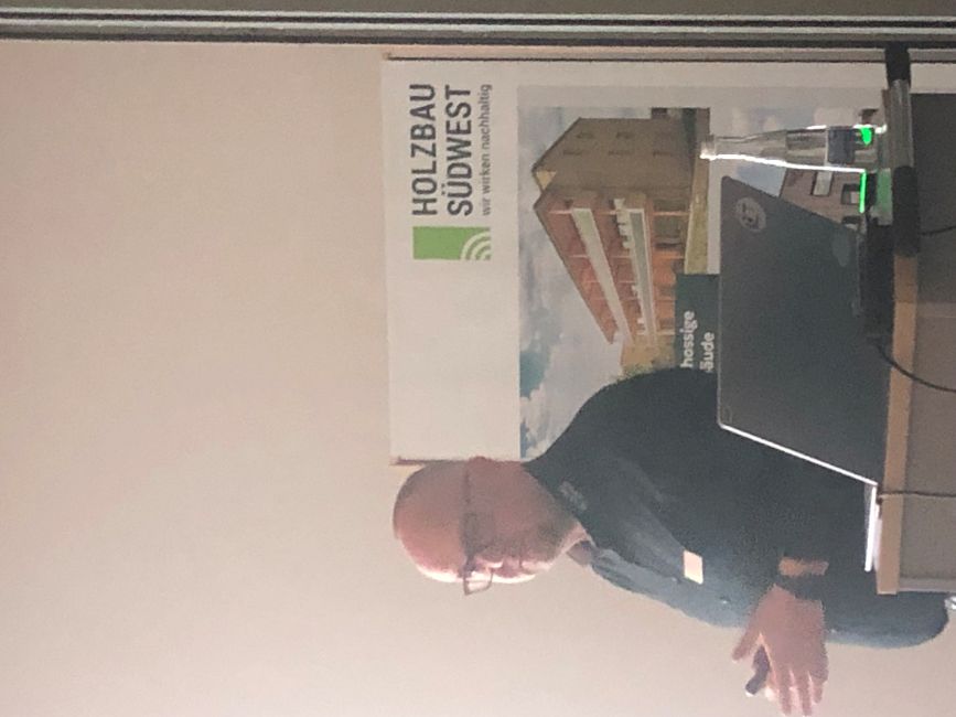 Im Anschluss an den Rundgang folgten die Impulsvorträge zu weiteren Details über den Low Tech Holzbau von den Referenten Florian Appel (Geschäftsführer, Black Forest Innovation), Andreas Wiesler (Geschäftsführer Holzbau Südwest GmbH) und Thibaud Surini (Fibois Grand Est).