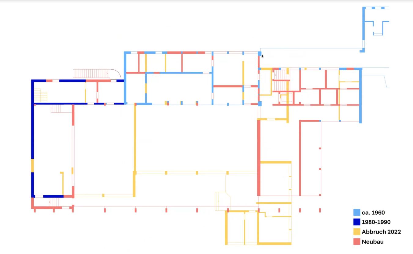 Grundriss mit Erweiterungen bzw. Umbauten aus verschiedenen Jahrzehnten
