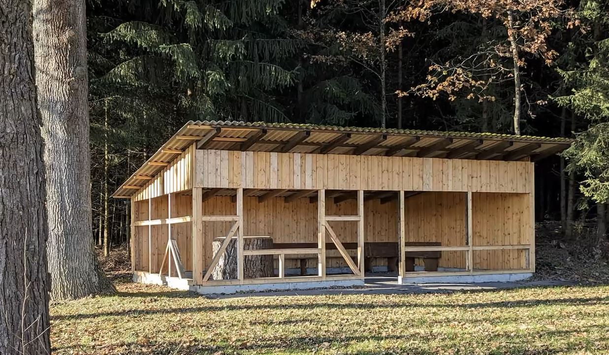 Schon beim Entkernen des Bestands packten die Ingerkinger Bürger und Vereine kräftig mit an. Die Erweiterung der Mehrzweckhalle war der ganzen Gemeinde eine Herzensangelegenheit. Viele Ideen entstanden im Prozess und wurden direkt umgesetzt. So wurde die Holzfassade nach dem Abbau nicht entsorgt, sondern direkt in einer Hütte verbaut, die am Waldrand zum Verweilen einlädt.