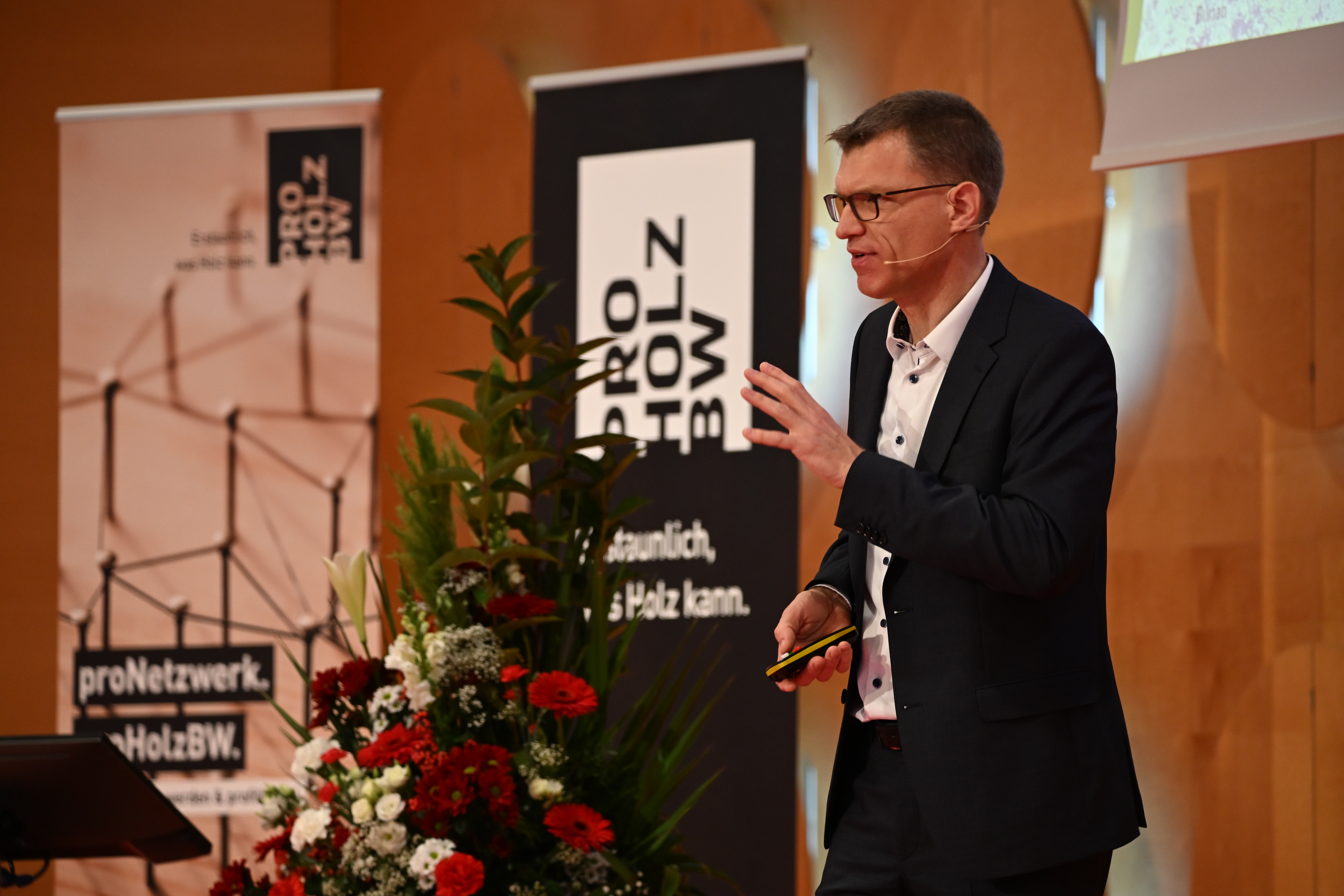 Uwe André Kohler, Geschäftsführer proHolzBW, eröffnet die 47. Fachtagung Holzbau BW