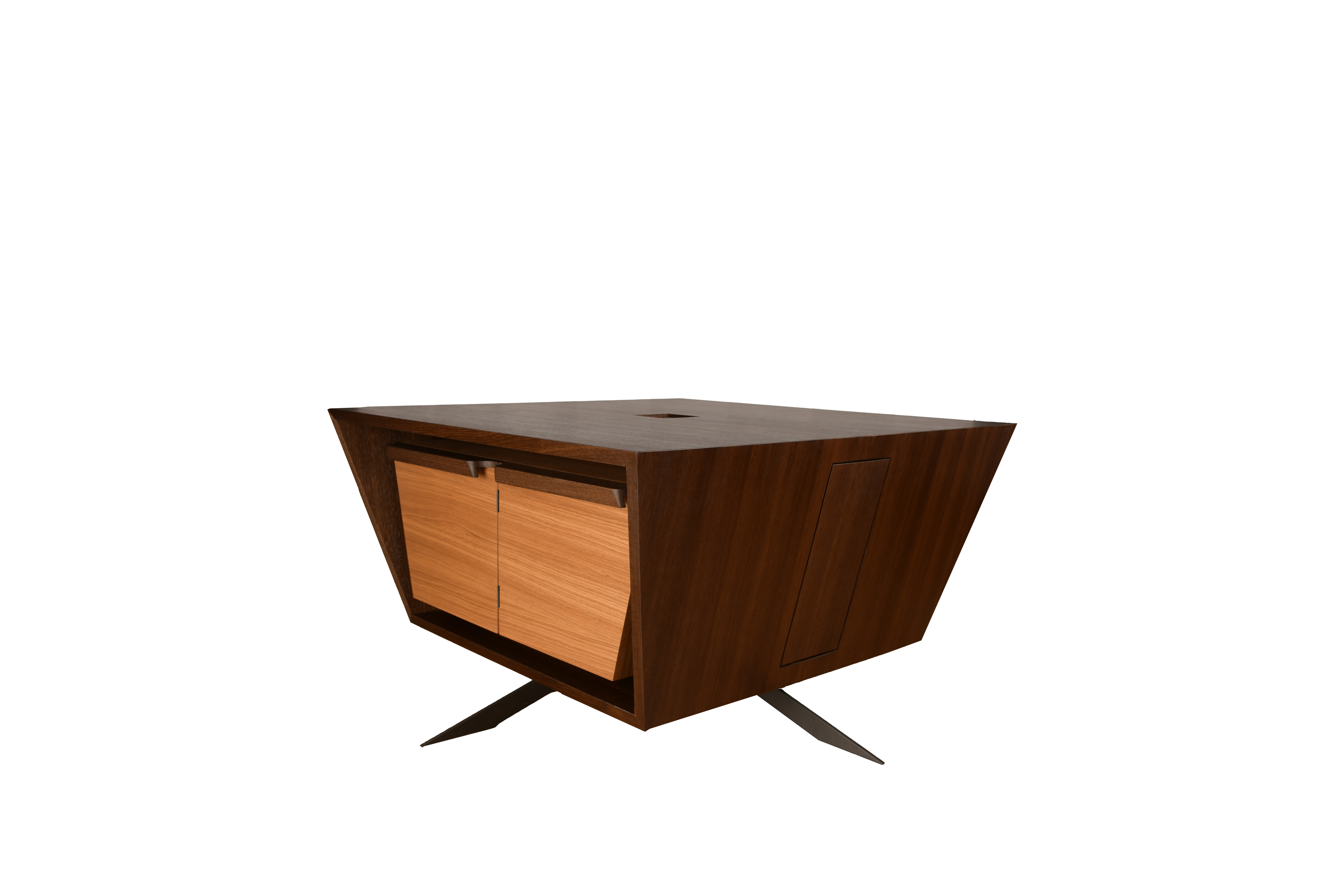 Der Couchtisch überzeugt durch seine elegante Trichterform und bietet flexiblen Stauraum für Kleingegenstände und Gläser.