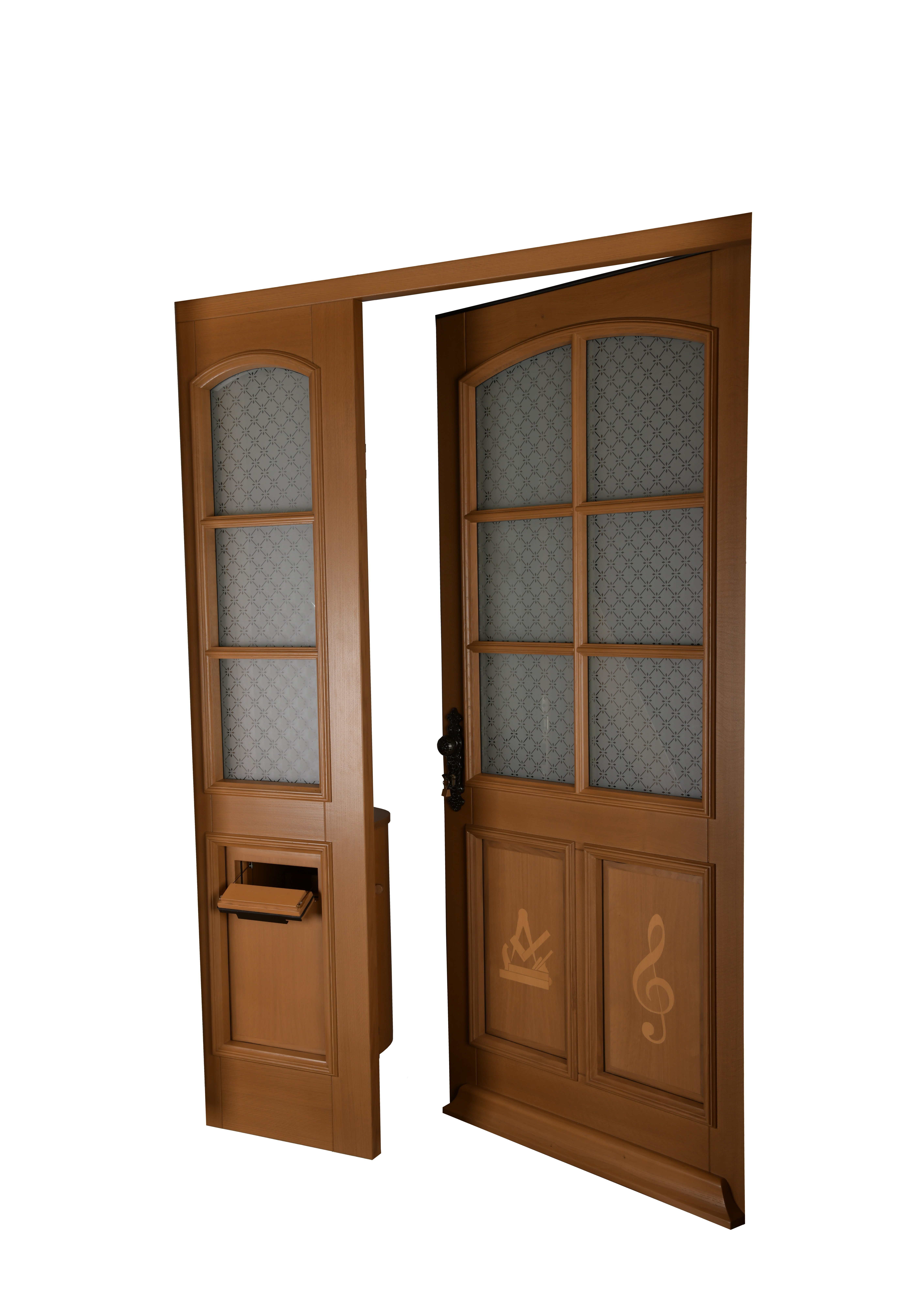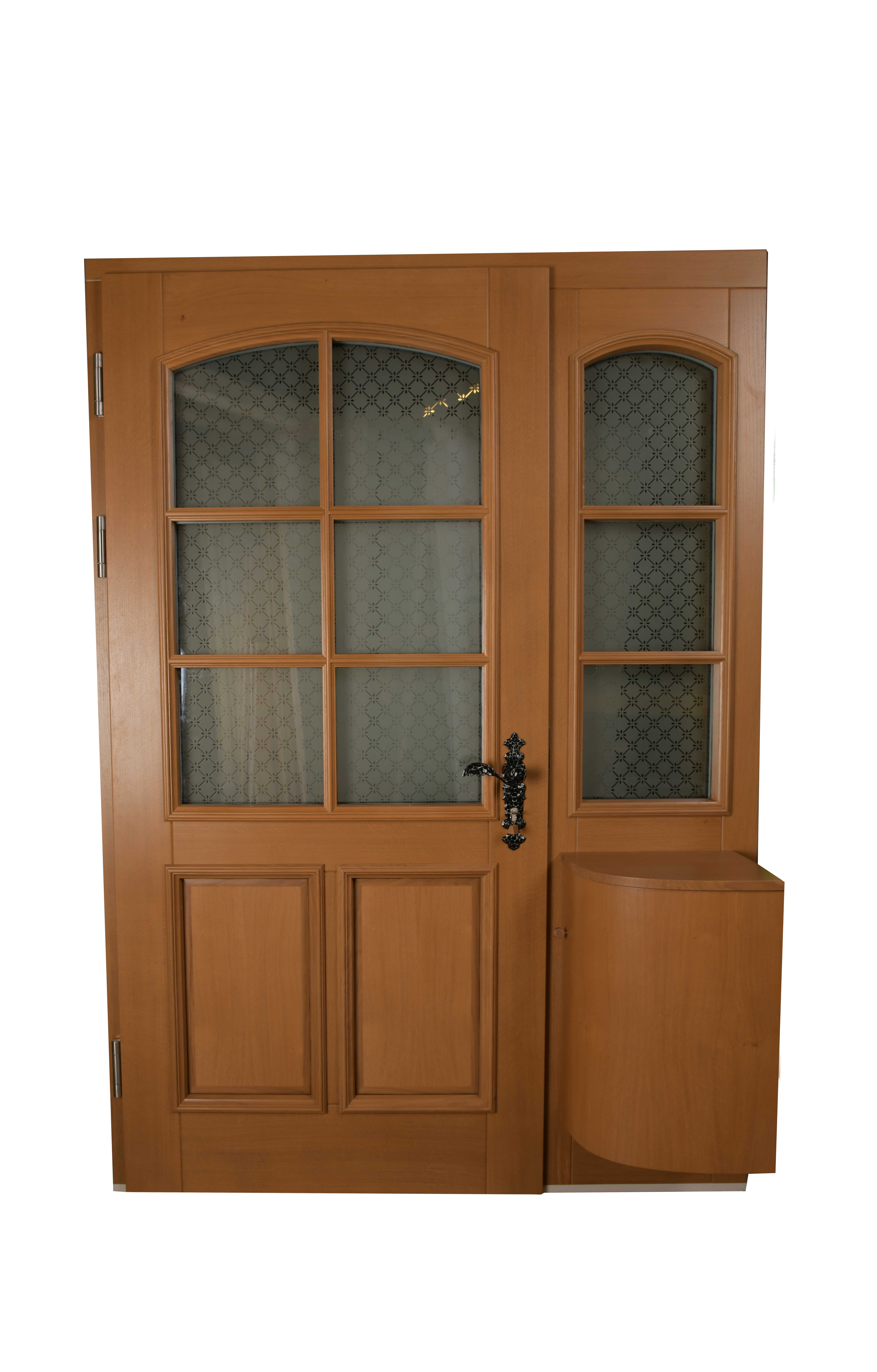 durch ihre klassische Gestaltung mit Glaseinsätzen und dekorativen Elementen,