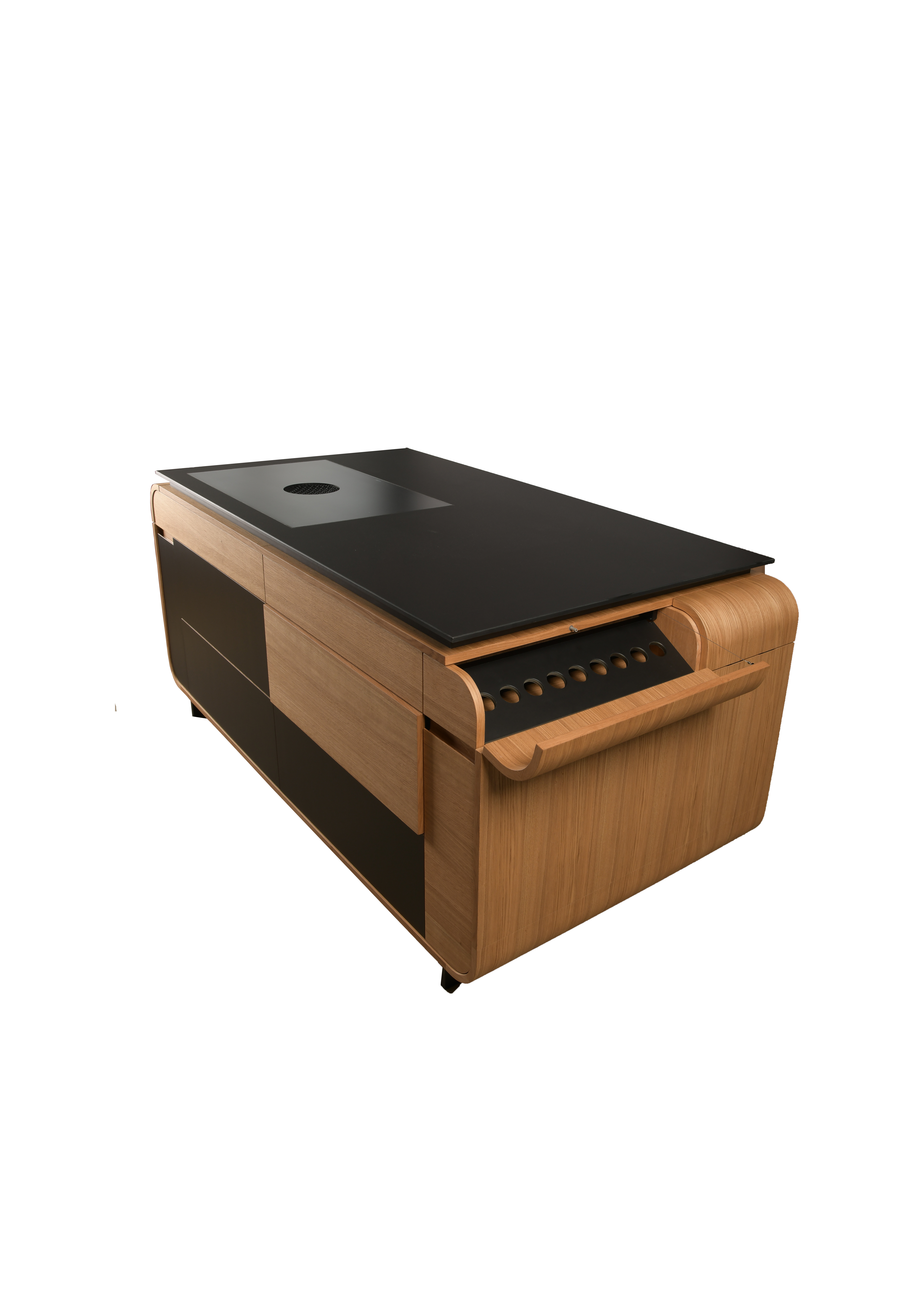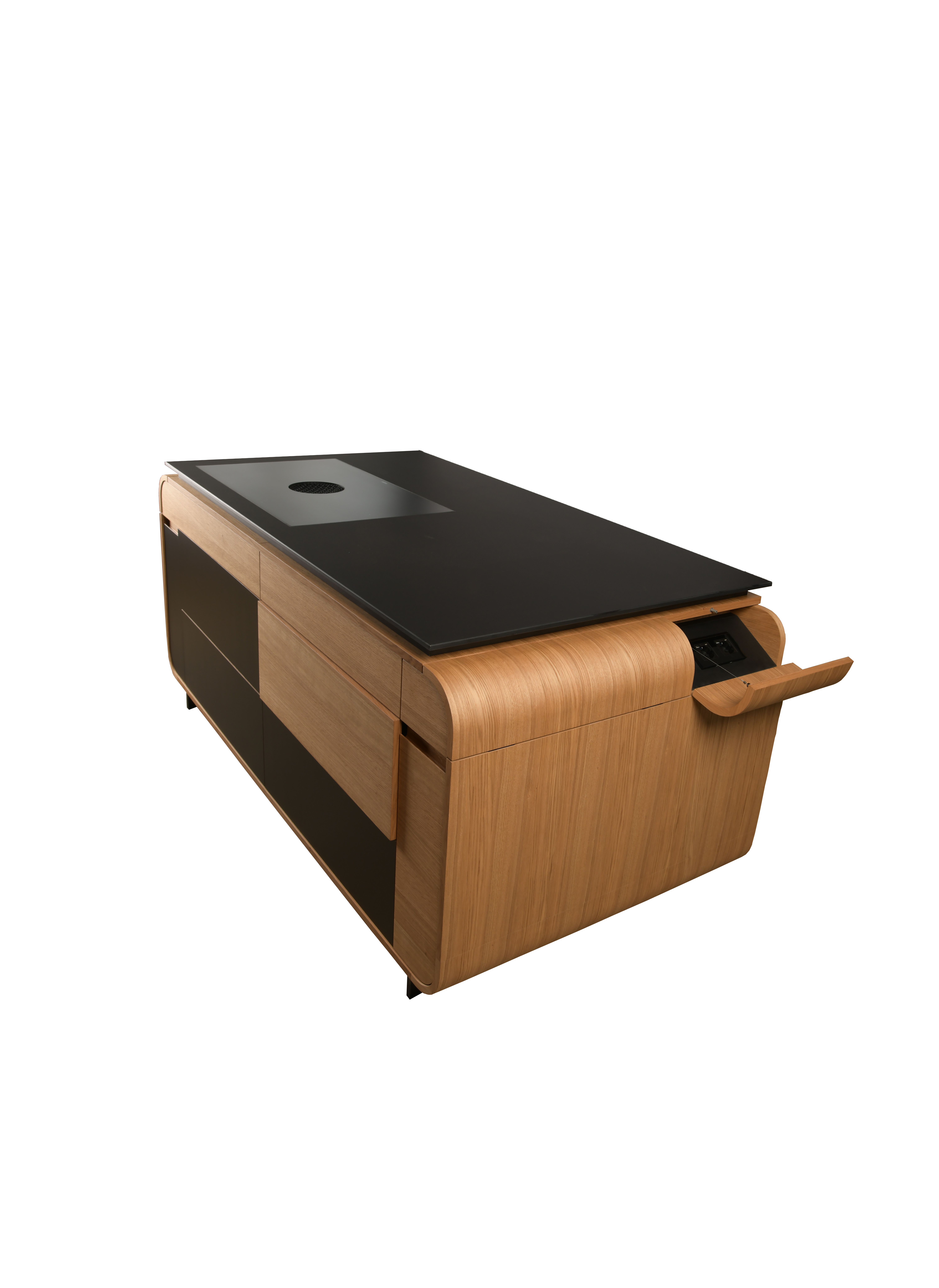 für gemeinsames Kochen im Alltag. Die Kombination aus natürlicher Eiche und tiefschwarzem