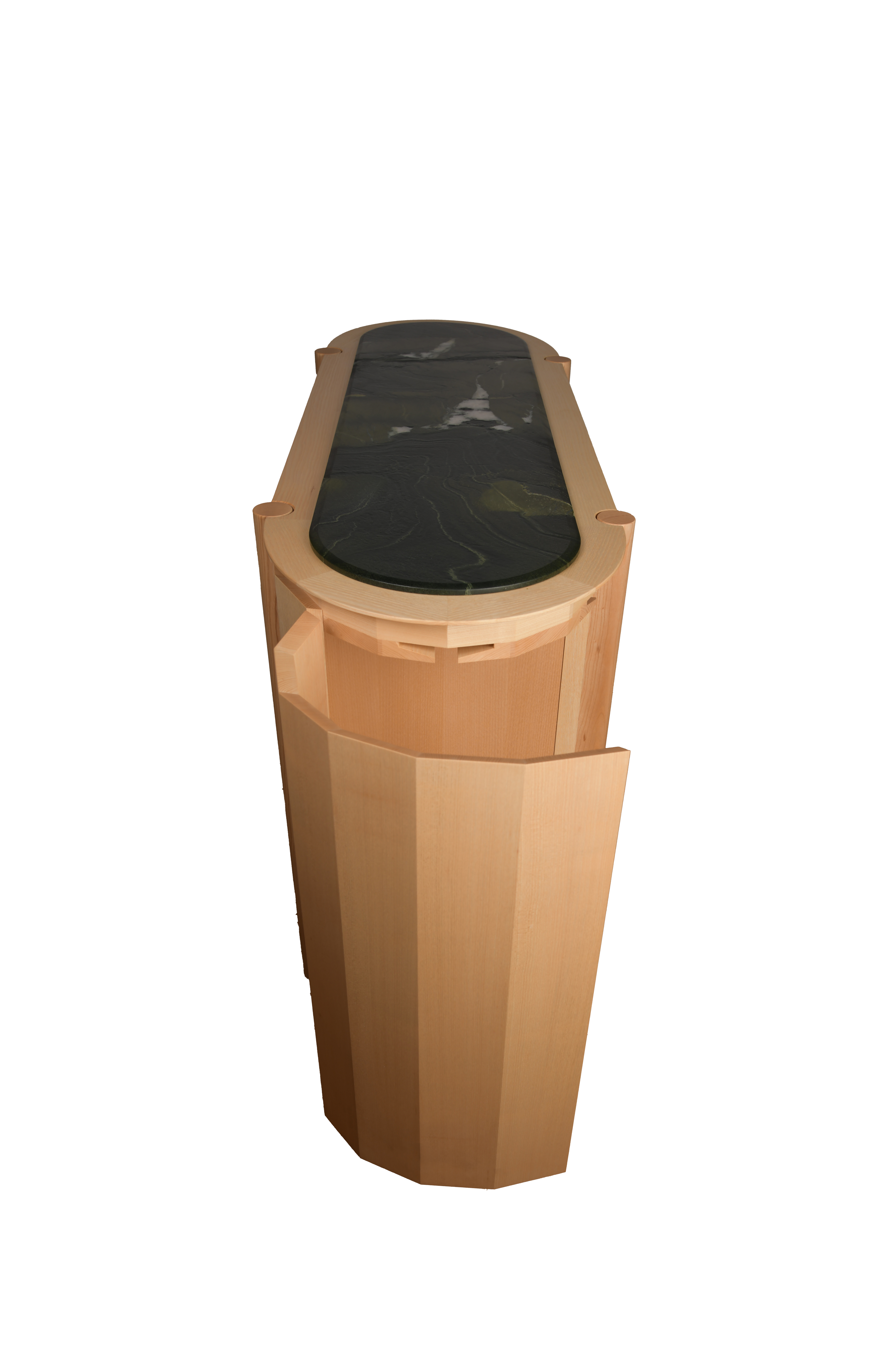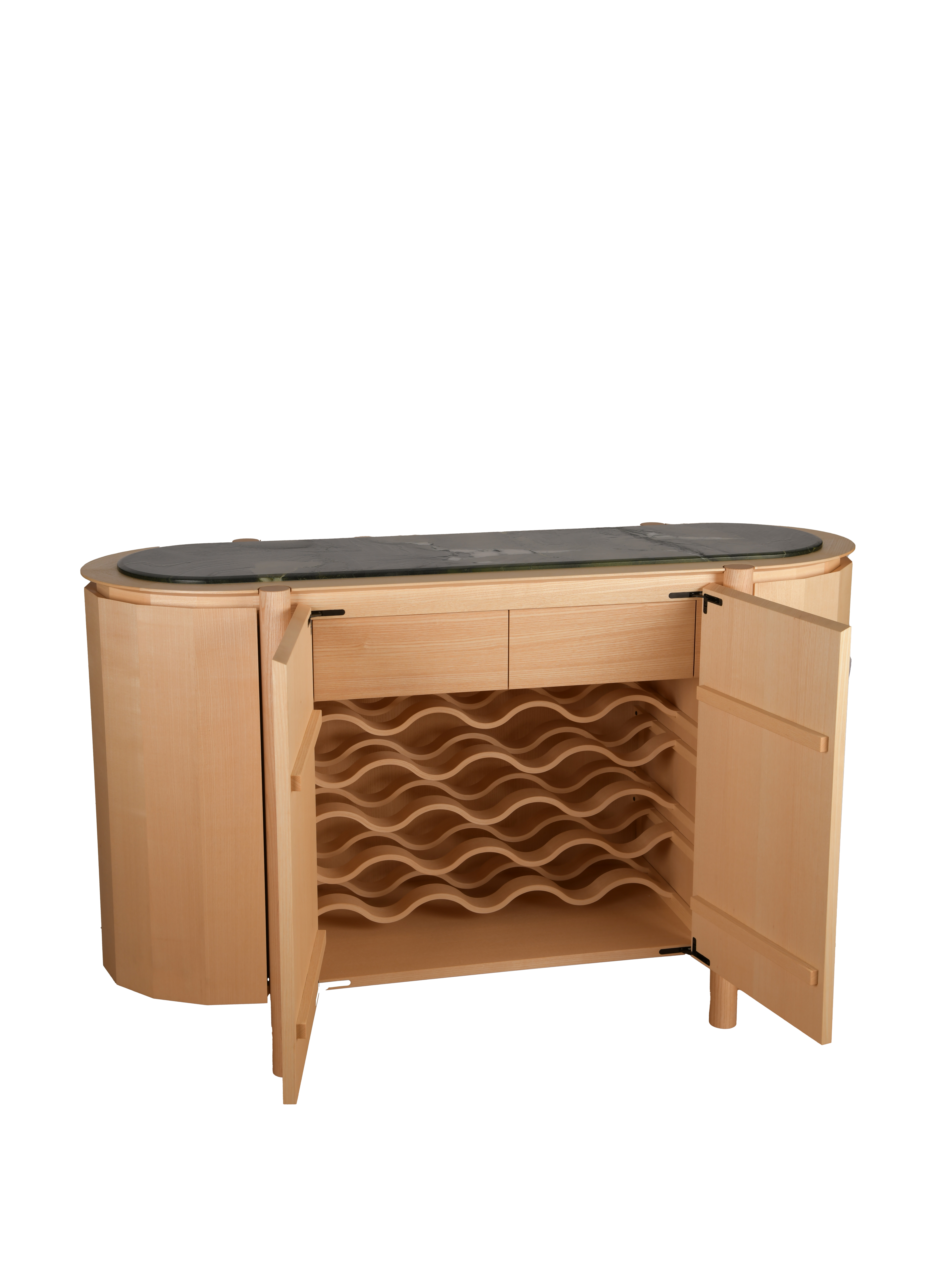 Tavolinum – die stilvolle Weinbar aus Massivholz, veredelt mit einer charaktervollen Steinplatte.