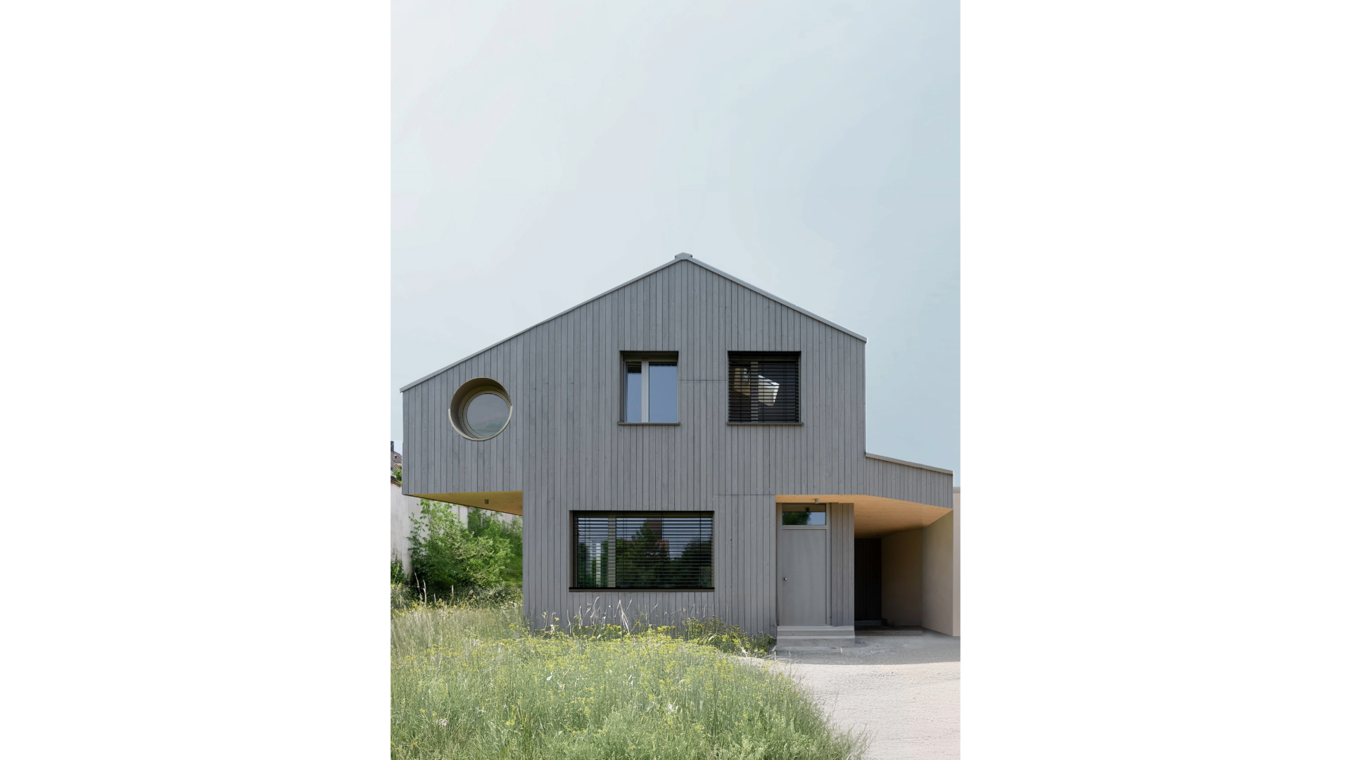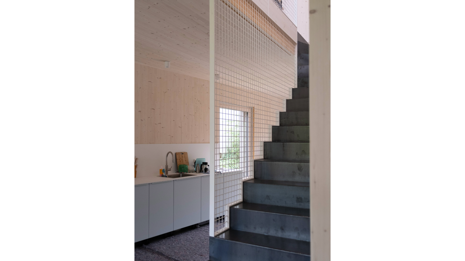 Das Wohnhaus in Massivholzbauweise bietet Wohnraum für zwei Erwachsene und ein Kind. Um einen maximalen Wohnkomfort zu gewährleisten wird das überschaubare Baufeld optimal ausgenutzt, indem sich die Gebäudekubatur an dessen Geometrie anpasst. Das Wohnhaus öffnet sich bewusst nach südwest und nordost mit großen Fensterflächen. Zu den anderen Seiten, welche unmittelbar an benachbarte Gebäude treffen, zeigen sie sich wiederum geschlossener, um genügend Privatsphäre zu gewährleisten.