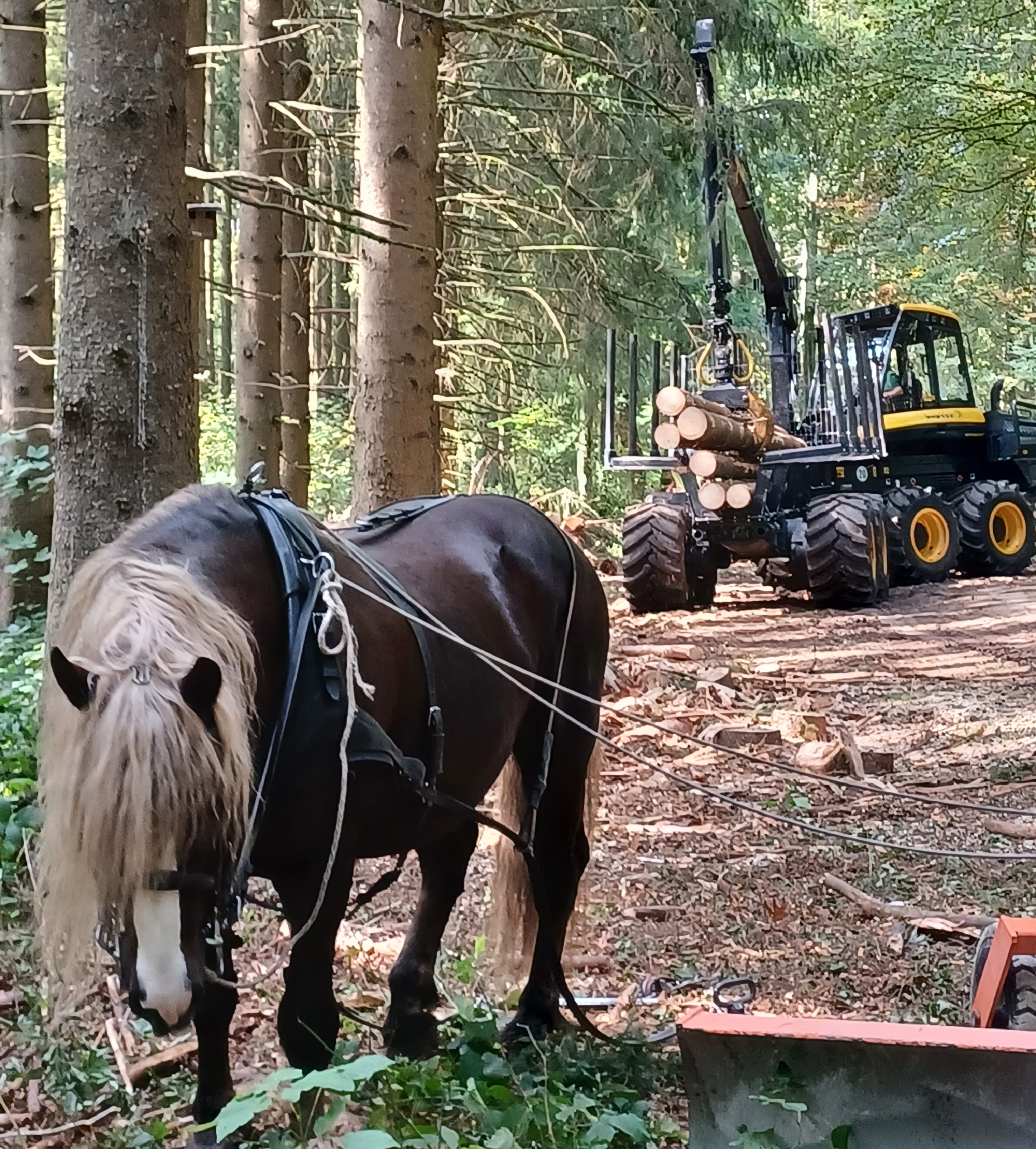 Vergangenheit und Zukunft im Blick: Rückearbeit mit Pferd und neueste Technik bei Forstbearbeitungsmaschinen