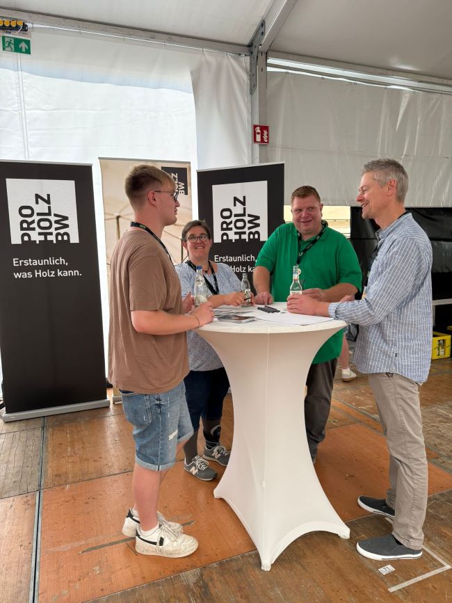 Zusätzlich präsentierten 64 namhafte Partner des Schreinerhandwerks ihre neuesten Produkte und Dienstleistungen. Hier bot sich die Gelegenheit zum ganztägigen Netzwerken, so auch auf dem Stand der proHolzBW.